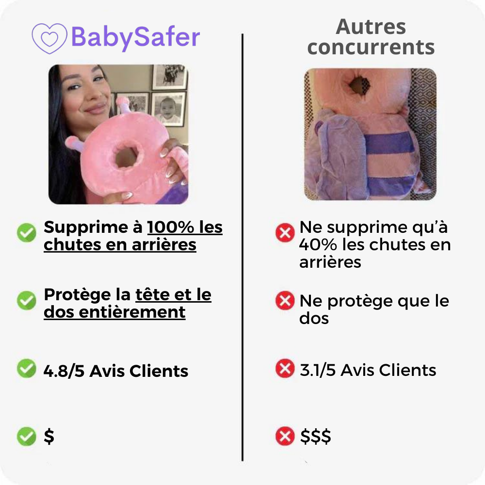 BabiySafer est l'outil parfait pour améliorer la croissance de votre bébé. Il protège sa précieuse tête des glissades et des chutes, et lui donne confiance en lui pour se relever après une chute !