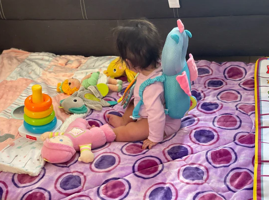 Les bébés âgés de 5 à 24 mois peuvent porter le BabiSafer à toutes les étapes de leur apprentissage ! Il est idéal en cas de retournement pendant le rampement, de chute lorsqu'ils se tiennent debout, ou de basculement lors de l’apprentissage de la marche et du jeu.